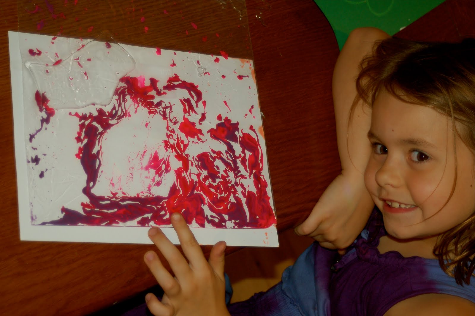 I tried again with a large flower outline drawn out for him to stamp. He liked that better, and he loved adding another color to the table. We talked about orange and found other objects that were orange. Which is not that hard right now because my table is COVERED with stuff for Lily's upcoming art party.
