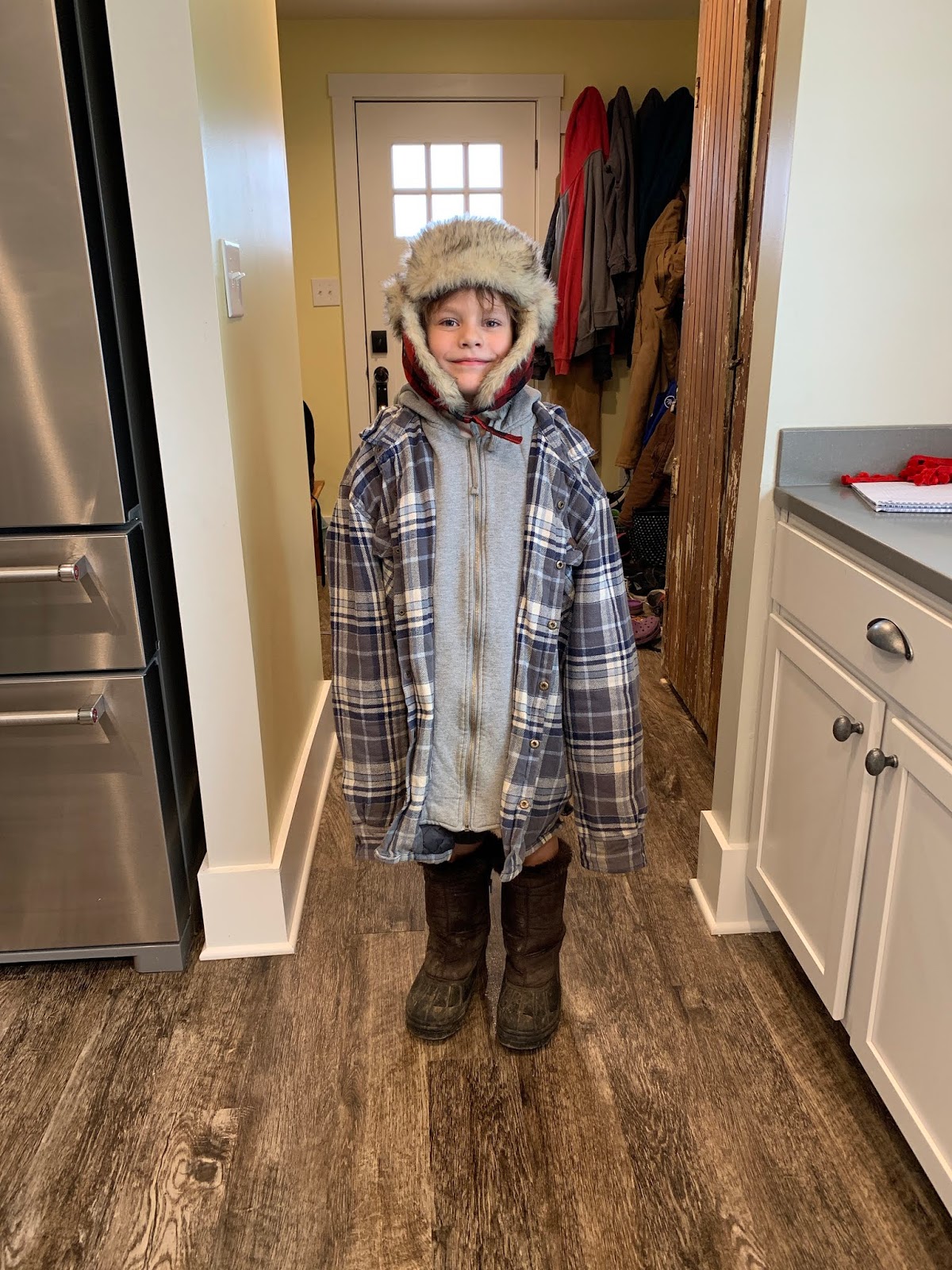 | He has an abnormal tolerance for cold. Please note he is wearing shorts with this outfit. |